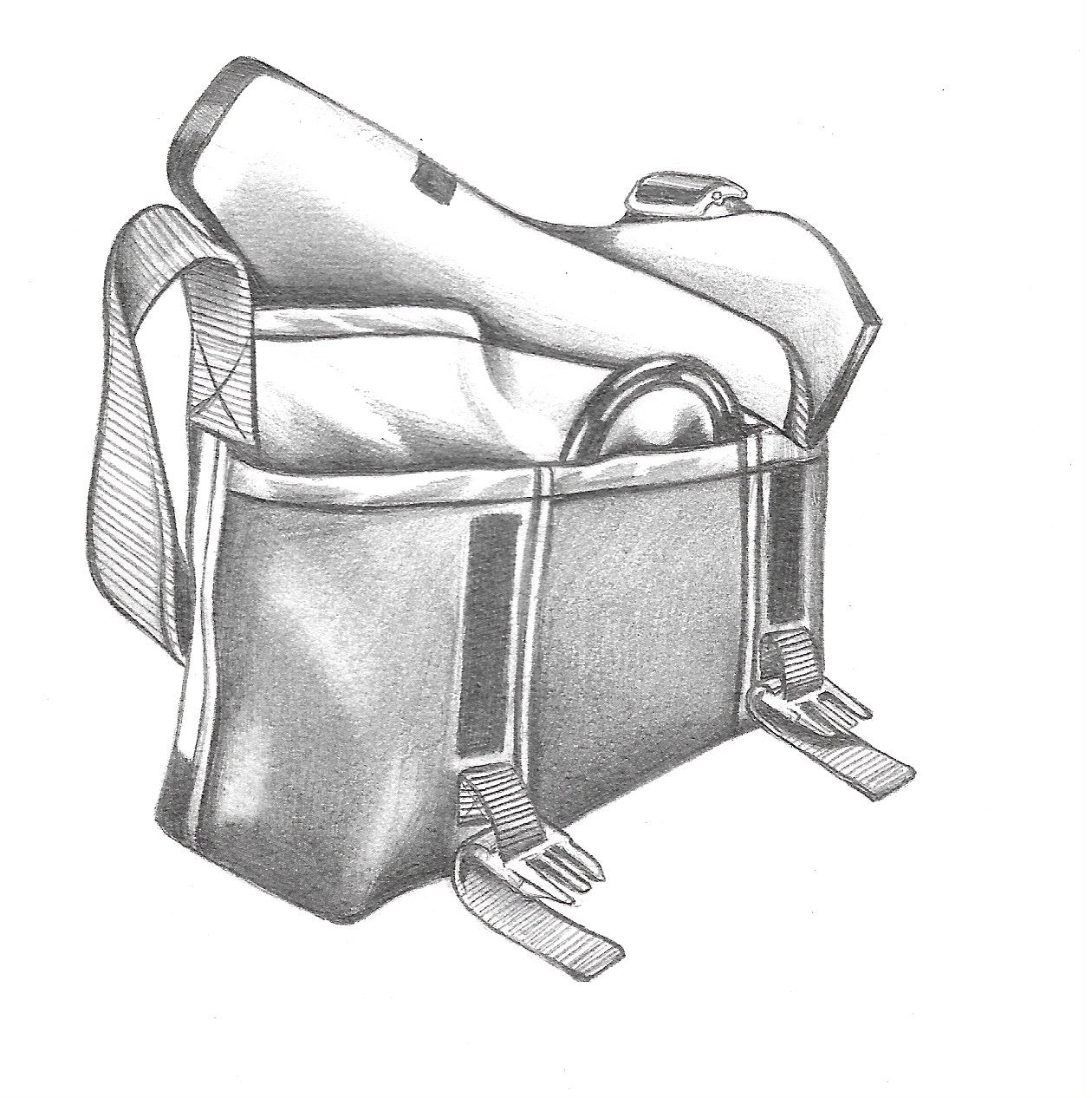An earlier, much loved design. Features pockets inside and out, no zippers or secret pockets, no handle. Simple customizations of additional back pockets recreate our original "Deluxe" and "Super Deluxe" courier bags.